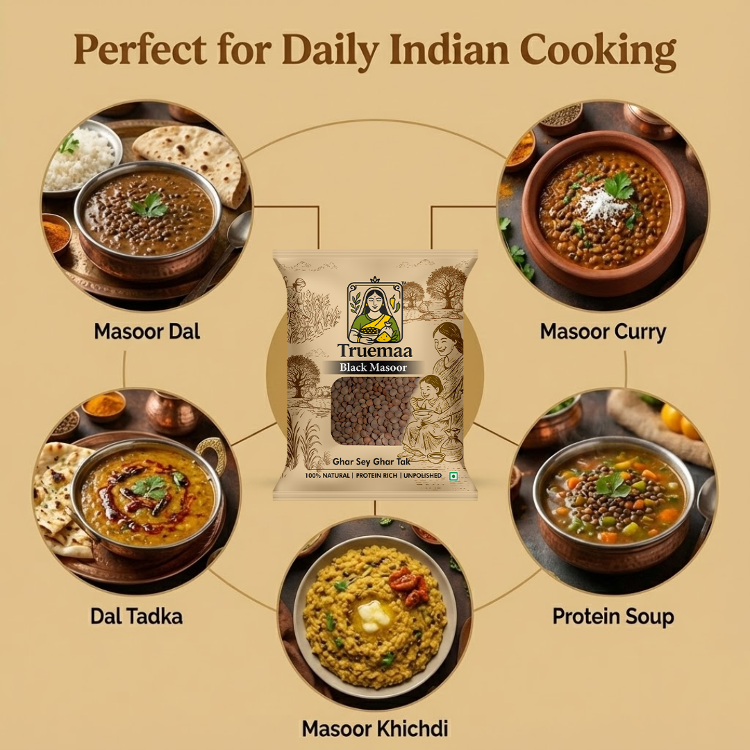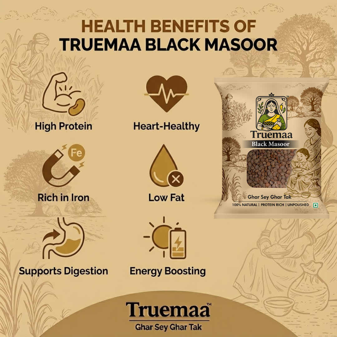 Bring home the goodness of real, unprocessed pulses for that choose Truemaa Black Masoor Dal for wholesome everyday cooking.