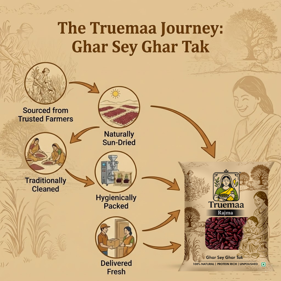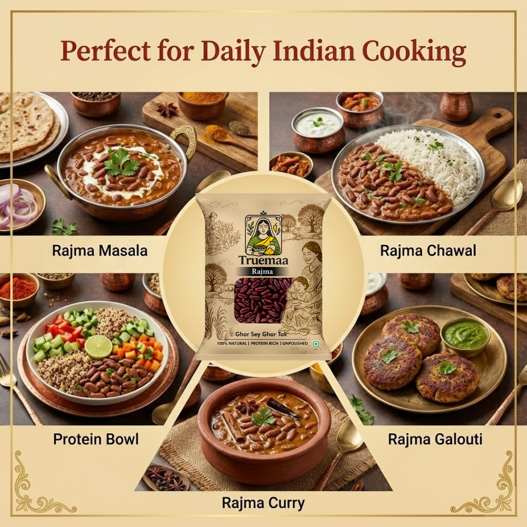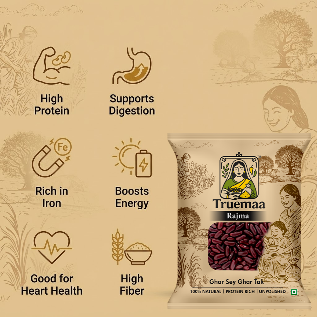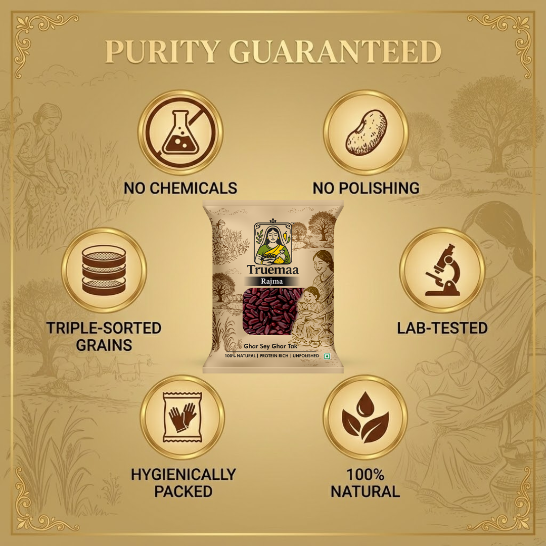 Perfect for classic rajma curry, slow-cooked gravies, rice-based meals, and wholesome family recipes, Truemaa Rajma blends tradition with quality. Free from artificial treatments and surface polishing, it fits seamlessly into clean and mindful cooking habits.